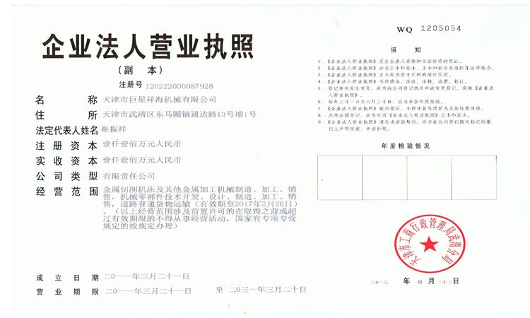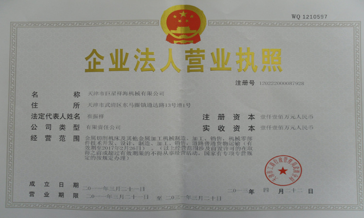 歡迎您瀏天津市巨星祥海機械有限公司網站,在這里您能了解到最新的產品工藝,最快的企業資訊,我們為您提供一對一網上咨詢服務,及時解決您的疑惑是我們的宗旨。